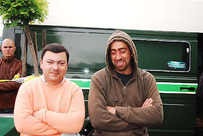 Nova sensação do Hip-hop alentejano. Depois do sucesso 'Yo Meni' de Zéi Ribeiro, eis que surgem os 'Alhada de Cação', com o DJ Sagres Mini (à esquerda) e o MC Boim (à direita) aqui num momento de improvisação perante os seus 1200 novos inimigos da autoridade.