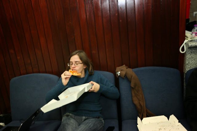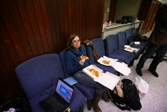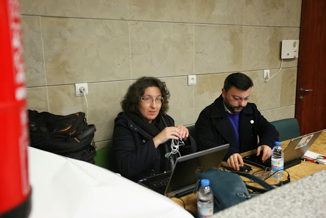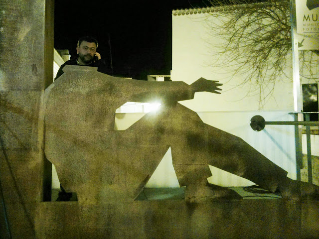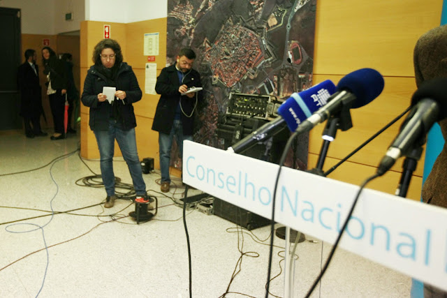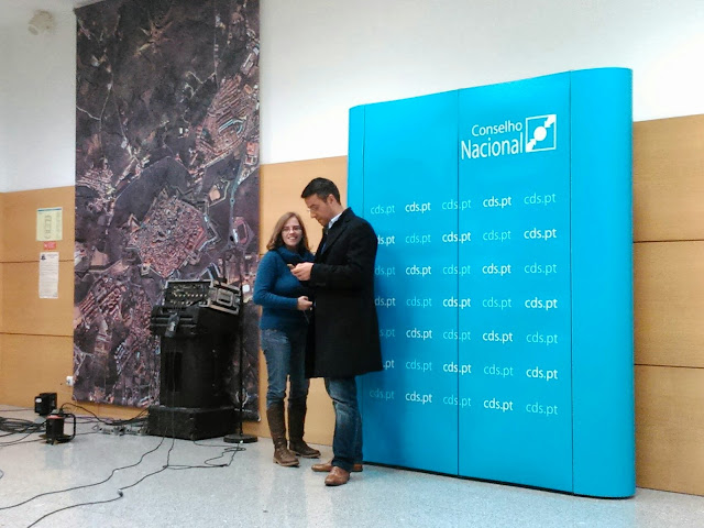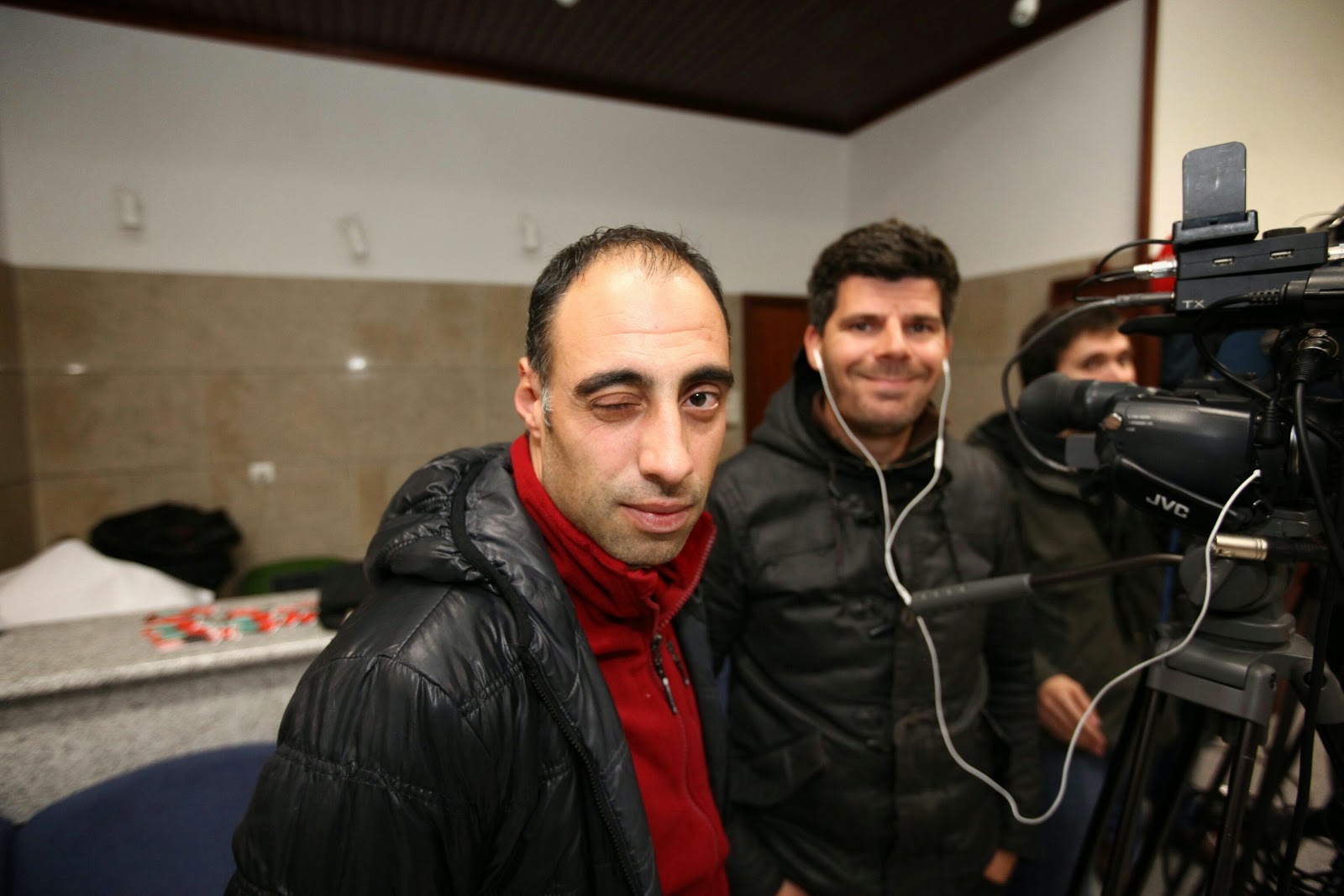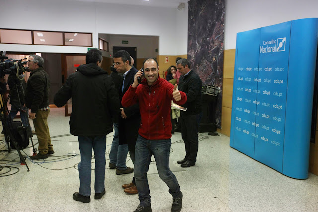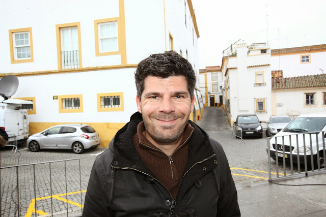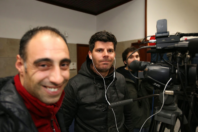 Momento em que Carla, da pastelaria "Horta das Tâmaras" entrega o sumo que o Amílcar deixou no estabelecimento ao sair a correr por motivo de reportagem... Boa vizinhança!